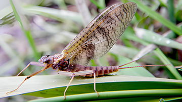 Les spents sont des insectes qui ont déjà pondu leurs œufs et qui flottent les ailes à plats à la surface de l'eau.