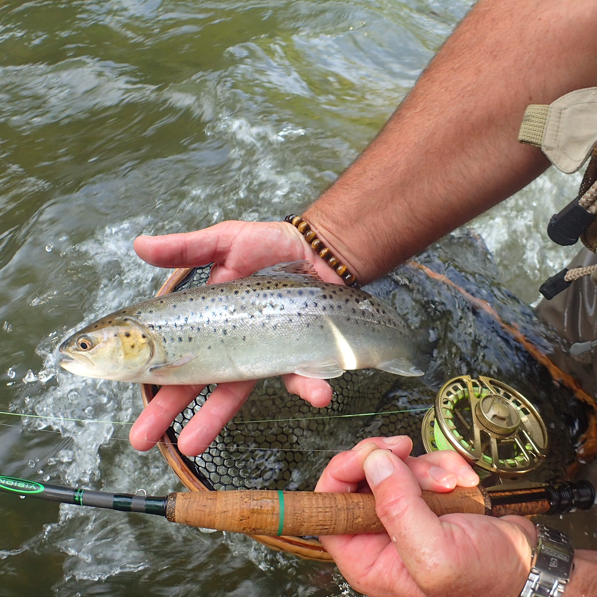 Des efforts récompensés par ce premier poisson en nymphe pour mon ami David lors de son initiation.