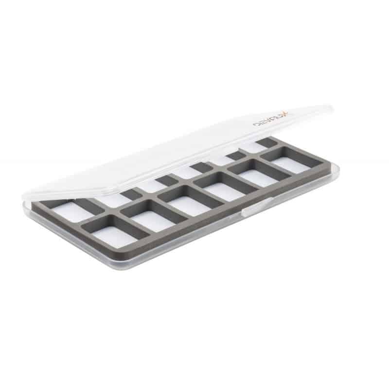 Boîte à cases avec fond aimanté blanc pour ranger vos hameçons ou vos petites mouches sèches.
