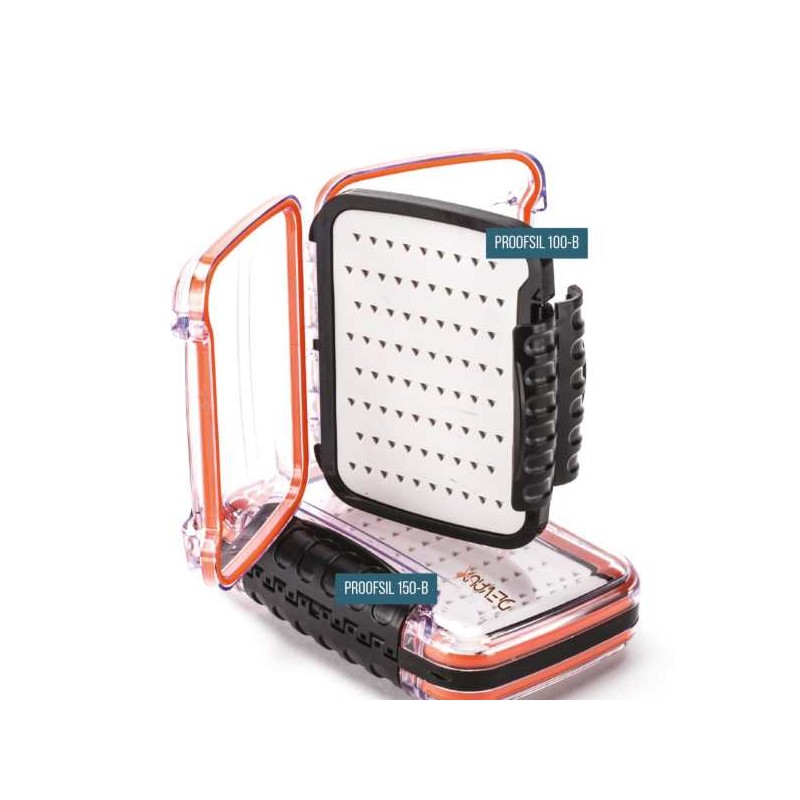 Boîte à mouche étanche équipée de 2 faces rainurées en silicone, ce qui permet d'évacuer l'eau et aux hameçons de ne pas rouiller.