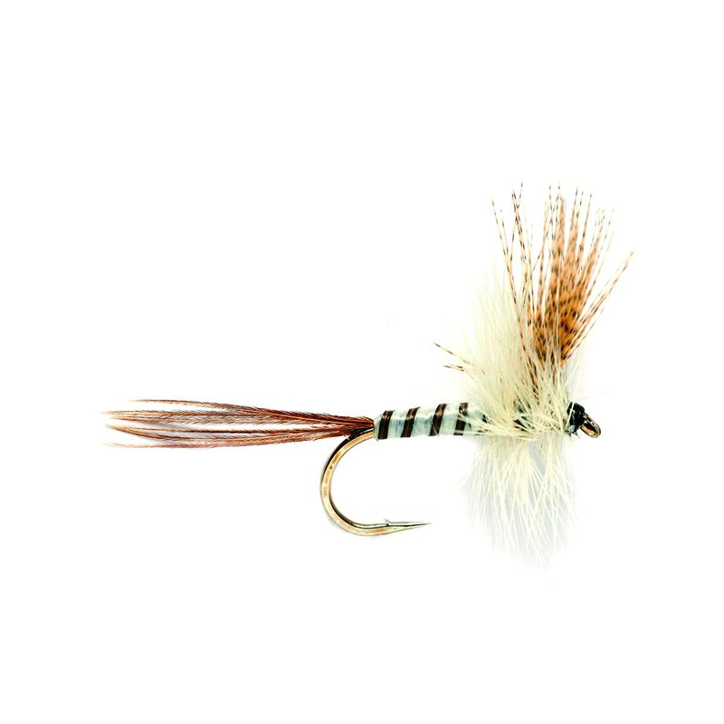 Mouche de mai, corps crème cerclée marron, haute flottaison.