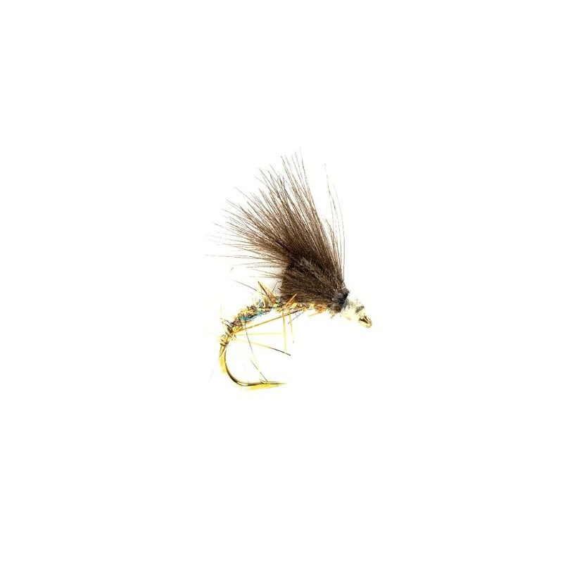 Emergente au corps en oreille de lièvre cerclé d'un tinsel pearl et dont les ailes sont en cdc. Parfaite pour pêcher discrètement les plats et les petits courants à la recherche de la truite fario ou de l'ombre. Elle convient aussi à la pêche en réservoir toute l'année puisqu'elle peut aussi imiter un chironome émergent.