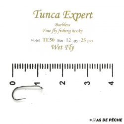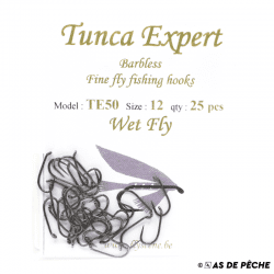 Pochette de 25 hameçons sans ardillon TE50 conçus pour monter des nymphes et mouches noyées.