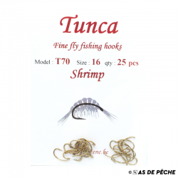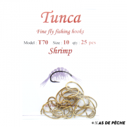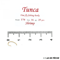 Hameçons renversés avec ardillon couleur bronze doré pour monter vos gammares et larves de trichoptères. Parfaits aussi pour les nymphes truite de mer. 25 par pochette.
