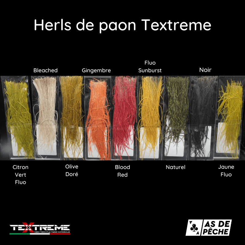 Herls de paon teints à la main pour le montage de vos corps ou thorax de nymphes et de noyées.