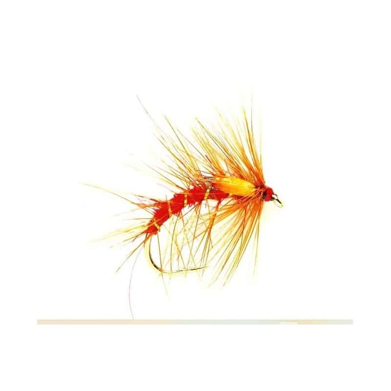 Mouche noyée qui se repère bien, à utiliser en pointe ou en sauteuse. Cette mouche vibre bien grâce à son hackle de qualité. A utiliser toute l'année en réservoir.