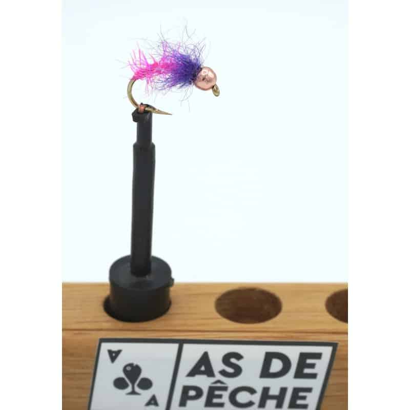Nymphe montée sur bille tungstène destinée à la pêche de l'ombre et des migrateurs comme la truite de mer en nymphe au fil.