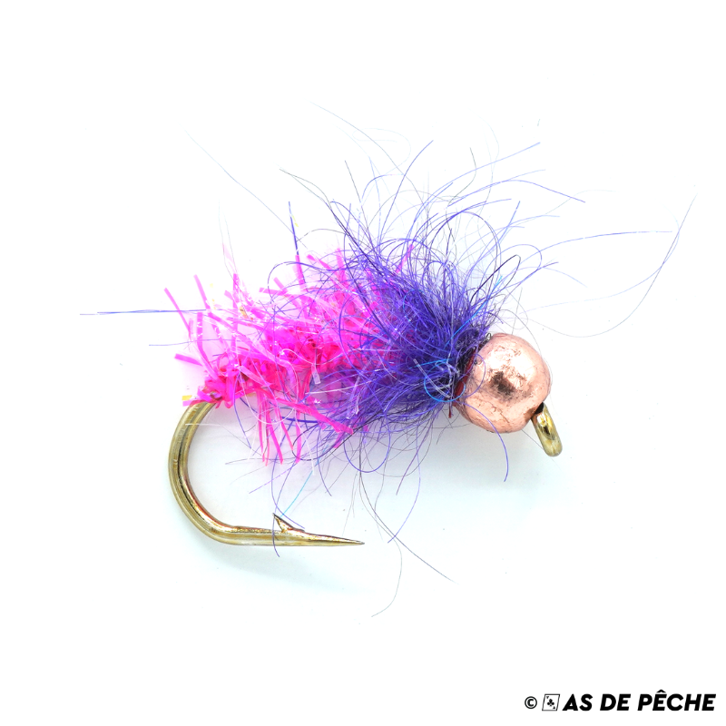 Fabriquée en France par MOUCH'AS, cette nymphe sera parfaite pour pêcher l'ombre et la truite de mer en nymphe au fil. Ces deux poissons réagissent bien à ce spectre de couleur. Les tailles 6 - 8 - 10 sont plutôt destinées à la truite de mer tandis que les tailles 12 - 14 et 16 à l'ombre commun.