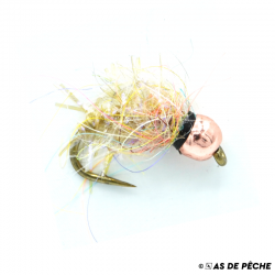 Nymphe à bille tungstène au reflets UV. Passe partout, que vous recherchiez la truite, l'ombre ou la truite de mer en fin de saison. Parfaite pour pêcher au fil.