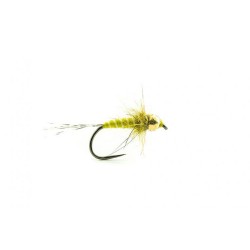 Nymphe Devaux de couleur jaune/olive clair à bille tungstène pour couler plus rapidement.