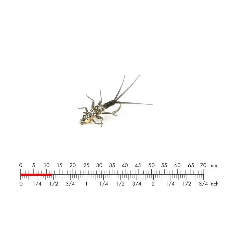 Imitation hyper réaliste de nymphe de mouche de mai. Incroyablement résistante, voir même indestructible. Montée sur une bille en tungstène.