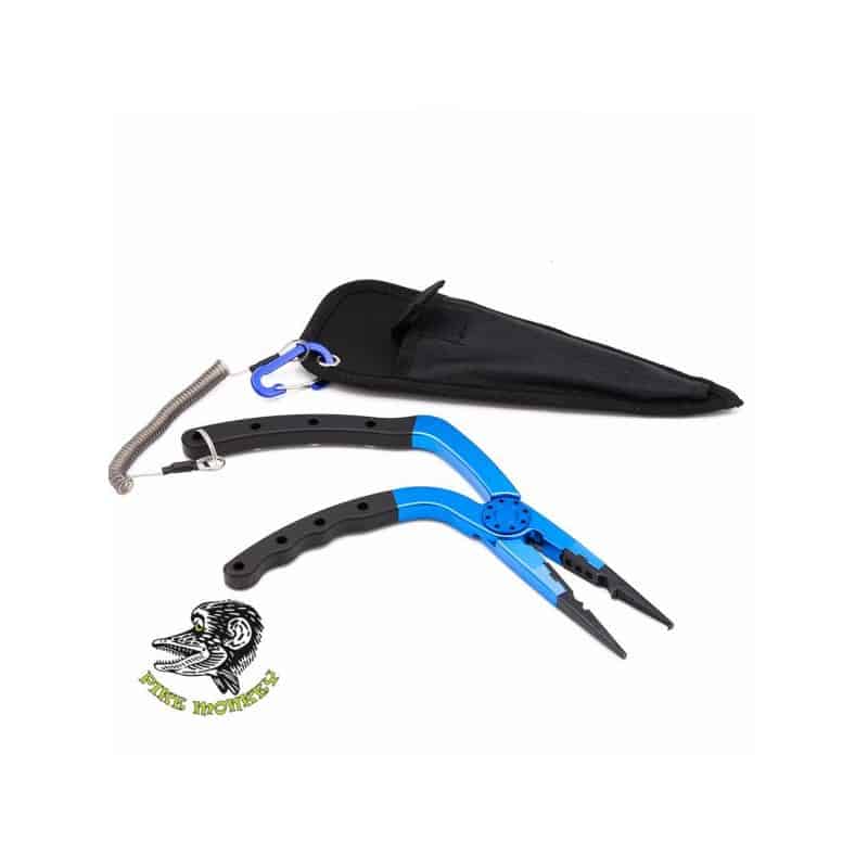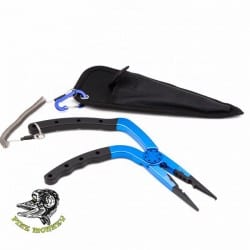Pince en aluminium usinée, ergonomique, remarquablement légère et extrêmement solide avec mâchoires en acier inoxydable et mames en carbure de tungstène pour toutes sortes d'activités de pêche, à la fois en eau douce et en eau salée.
