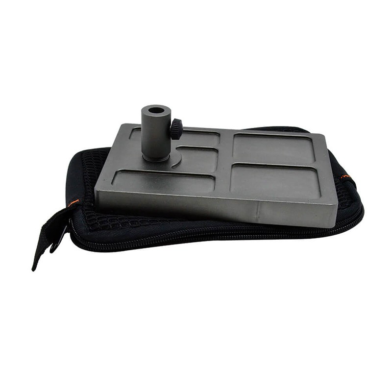 Socle en alu avec des emplacements pour les matériaux comme les billes et les hameçons. Préparez votre matériel et c'est parti pour des heures !