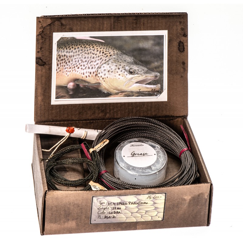 Présentée dans un magnifique coffret, la soie est accompagnée d'un pot de graisse et de deux bas de ligne dégressifs.