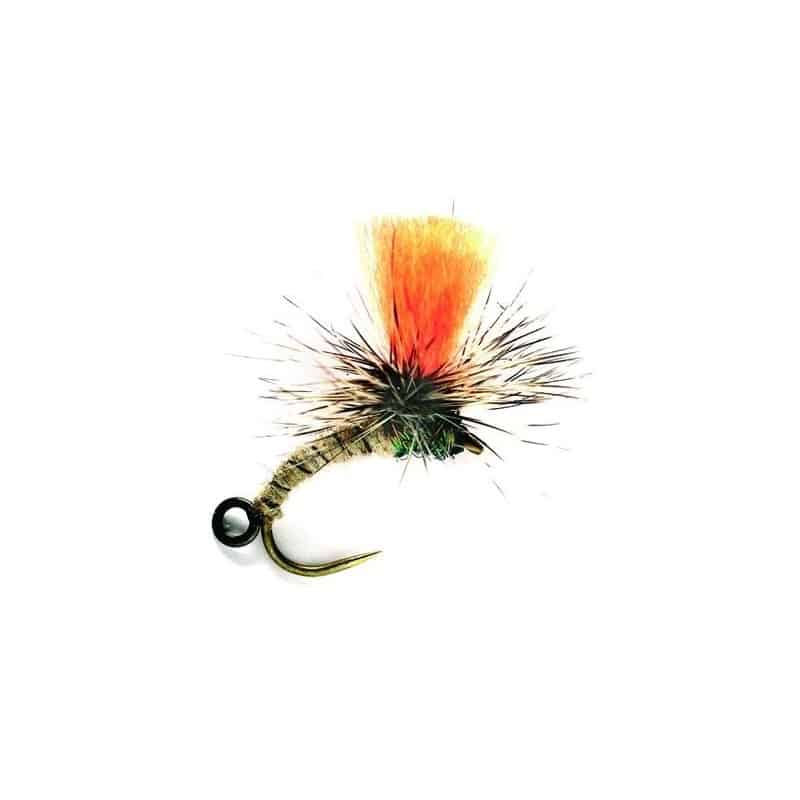 Super visible grâce au montage parachute orange fluo, cette mouche doit se trouver dans toutes les boîtes !
